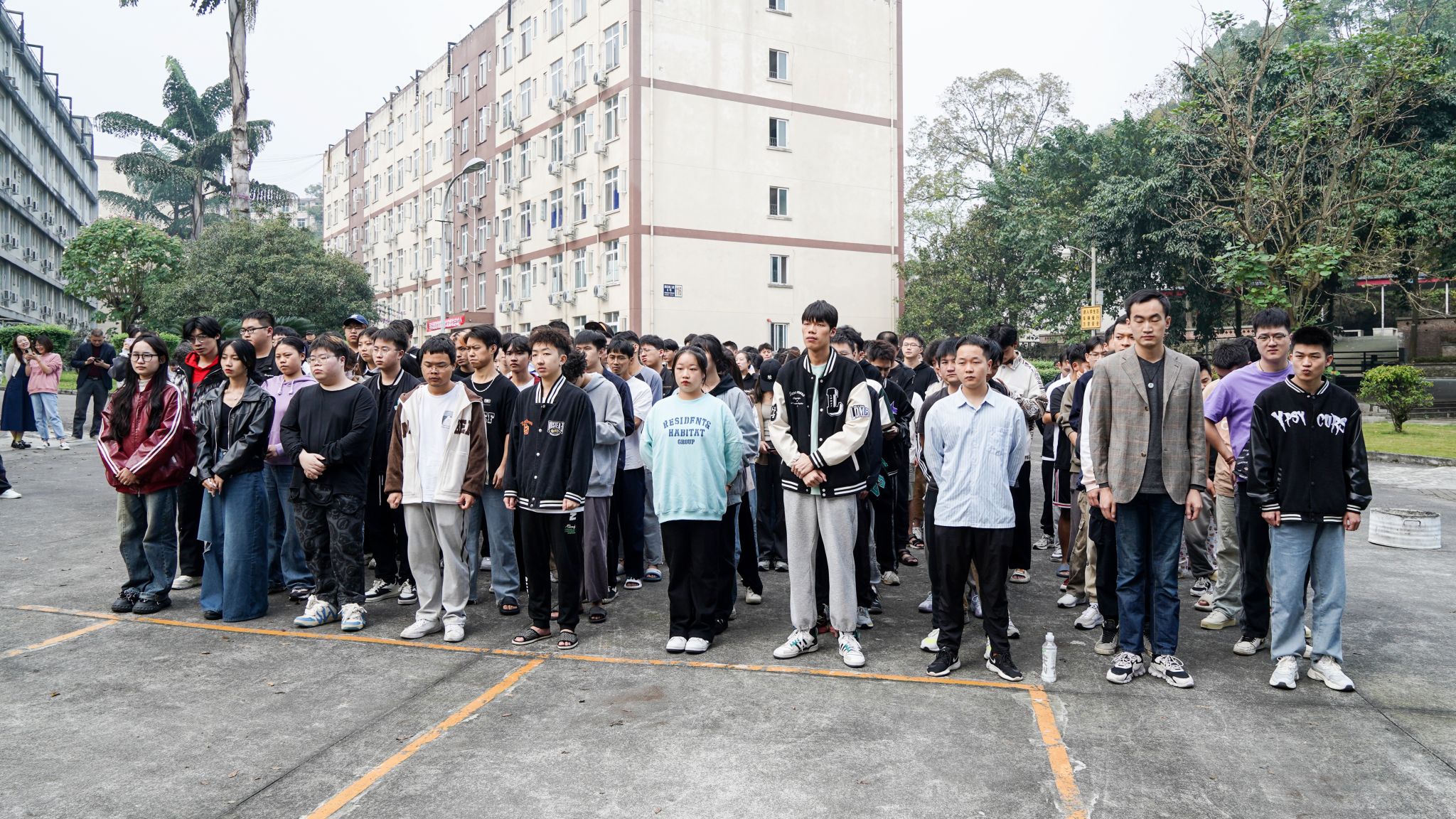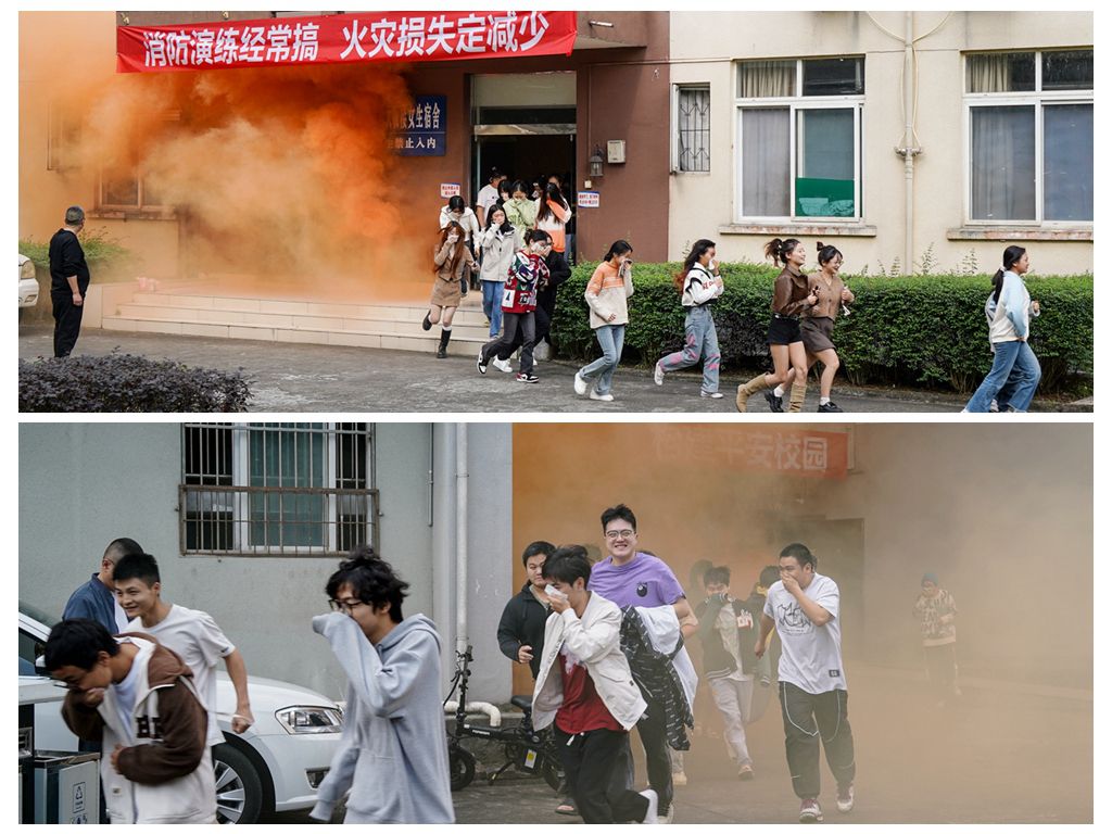 14时30分,应急疏散演练正式开始。4号和6号学生公寓大楼火灾探测器报警,宿舍楼外模拟烟雾升起,同学们捂住口鼻、双手护头、放低身体冲出冒着浓烟的宿舍,老师们沉着冷静地指挥,引导学生们安全、快速、有序地从多个安全疏散通道向避难点疏散,师生有条不紊,完成疏散任务。