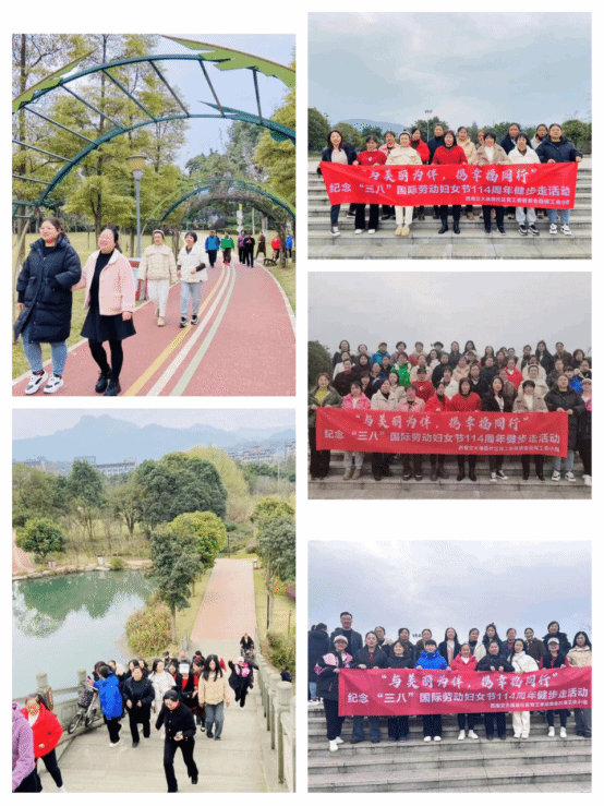 为迎接第114个“三八”国际劳动妇女节的到来,进一步激发女职工不断提升素质,立足岗位建功立业的热情,调动女职工后勤保障服务工作的积极性、主动性和创造性,不断丰富女职工的业余文化生活,2024年3月7日,峨眉校区后保工会小组,组织全体女职工开展了“与美丽为伴,携幸福同行”“三八”节环湖健步走活动。
