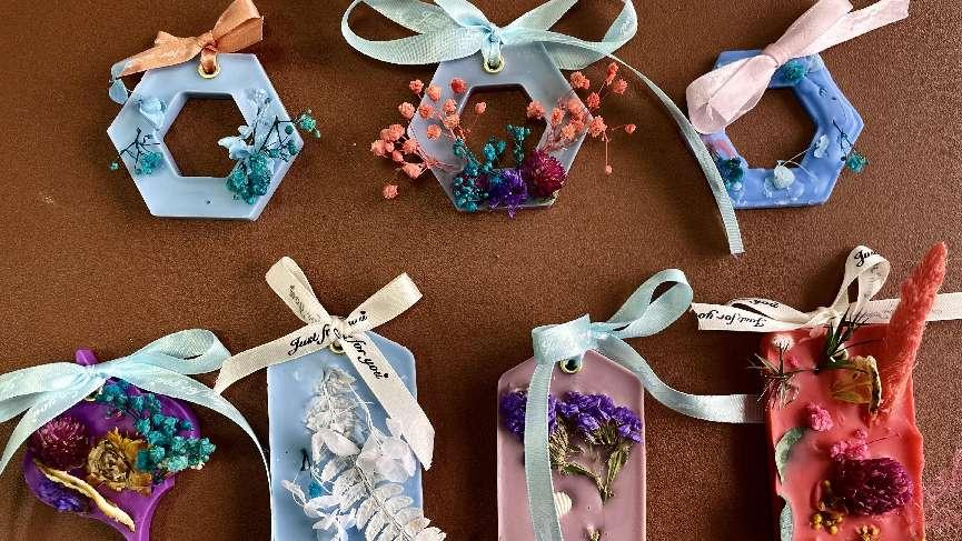 活动现场设有掐丝珐琅釉画、扭扭棒创意花艺、香薰蜡片手作三大体验区。大家精神饱满,参与热情高涨,活动现场氛围温馨愉悦,欢声笑语不断,在精心的构思与审美下,创作出一件件独一无二的手工作品。