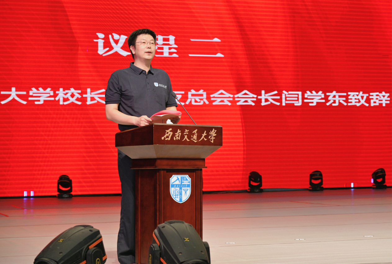 闫学东代表学校向长期支持西南交大在峨眉办学的乐山市委市政府、峨眉山市委市政府表示感谢,向从五湖四海返校的校友表示热烈欢迎。他谈到,在跨越三世纪的办学历程中,峨眉办学岁月在交大发展历史上留下了浓墨重彩的印记,培养出院士大师、专家学者、大国工匠、行业翘楚等一大批杰出英才,为国家经济社会发展、特别是为我国轨道交通事业发展作出了不可磨灭的贡献。学校一系列办学成绩离不开广大校友的关心、支持和帮助,从母校走出的四十余万栋梁英才,是母校最骄傲的成就,也是最值得信赖的力量。明年学校即将迎来建校130周年校庆,希望全体校友们团结起来,共同助力母校未来事业发展,奋力书写属于新时代交大人的崭新篇章。