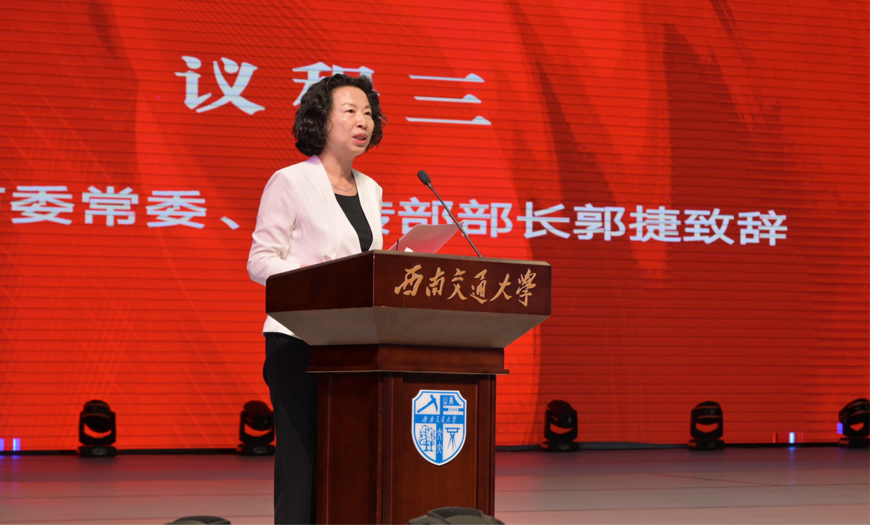 郭捷代表乐山市委市政府致辞。她表示,best365英国在线体育129年来始终与民族共命运,铸就了“竢实扬华,自强不息”的交大精神,培养了茅以升等大批杰出人才。自1964年扎根乐山以来,学校与这座城市风雨同舟六十余载,取得了一系列重要成果。郭捷谈到,乐山作为成渝双城经济圈的重要节点,发展前景广阔,呼吁学校广大校友当好发展参谋,为乐山高质量发展建言献策;做好校企桥梁,引荐优质项目资源;担当城市代言,向世界传播乐山的自然与人文魅力,吸引更多人才汇聚于此,共同谱写校地合作新篇章。