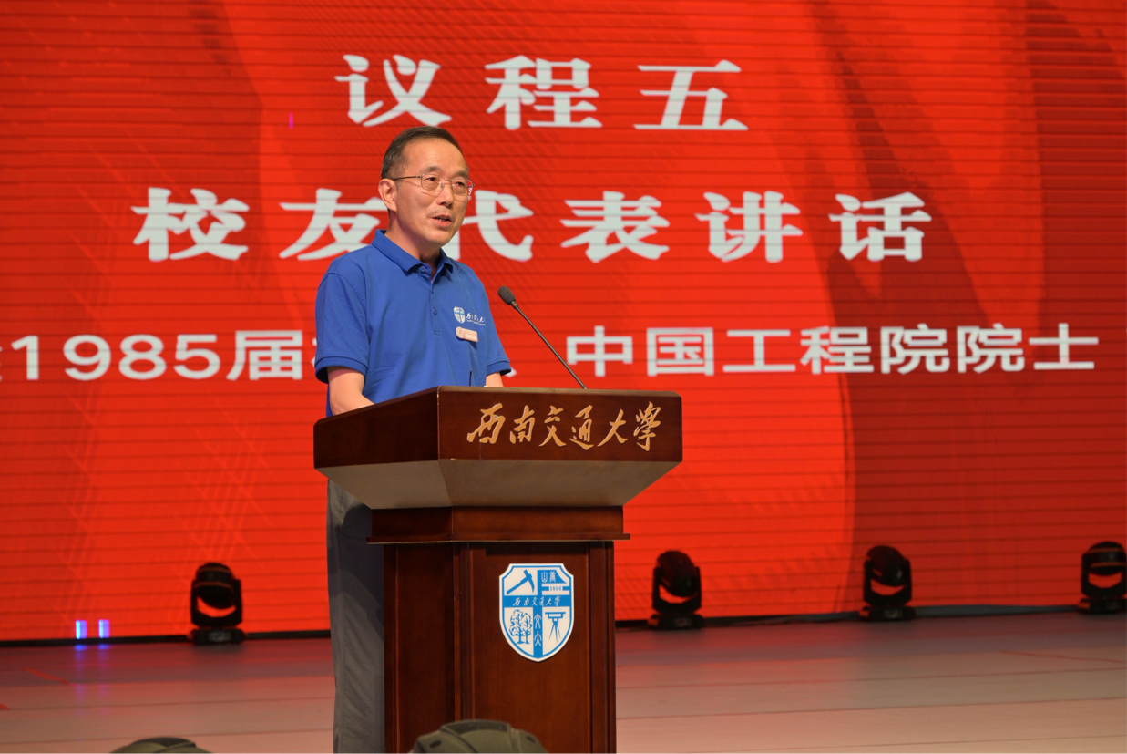 校友代表、铁道桥梁1985届校友高宗余院士深情追忆峨眉求学的青春岁月,对母校的培养和恩师的教诲表达由衷感激。他表示,四十年来,母校不断开创发展新局面,在人才培养、重大工程建设、重大科研创新方面硕果累累。放眼未来,期待母校围绕建设交通特色鲜明的高水平研究型一流大学目标,勇担科技自立自强使命,为全面建成社会主义现代化强国做出新时代的新贡献。