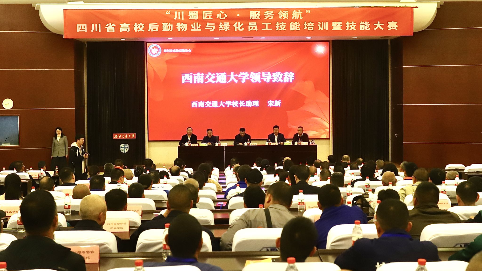 宋新向与会同仁表示热烈欢迎,对四川省高校后勤协会及各兄弟高校长期的关心支持致以感谢。他回顾学校129年的办学实践并指出,高水平的服务保障是育人工作的重要支撑。他强调,本次技能培训与大赛是弘扬“川蜀工匠”精神、践行“服务育人”理念的生动实践。希望大家珍惜机遇、积极交流、互学互鉴,实现理论素养与实践技能的双重提升,共同为我省高等教育后勤事业的高质量发展筑牢根基。