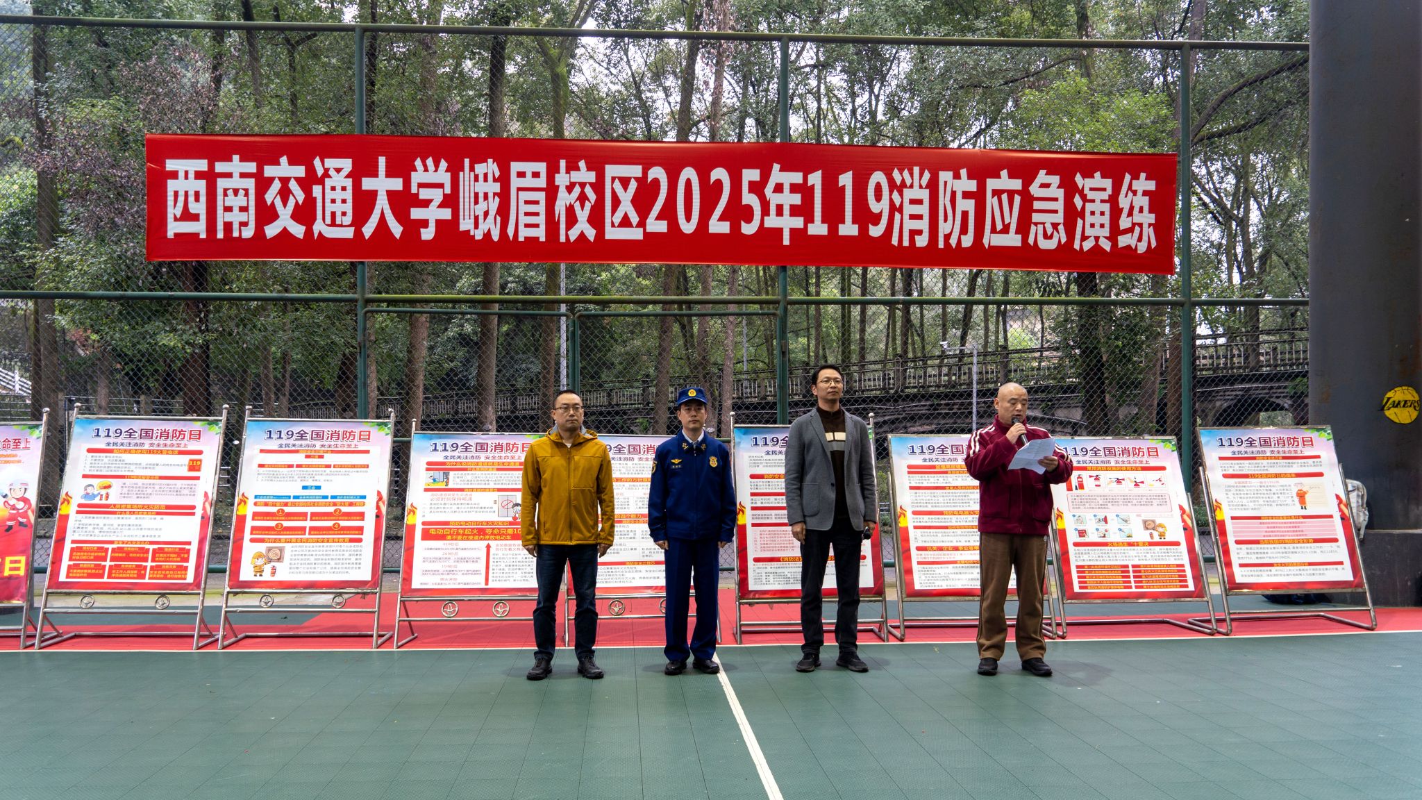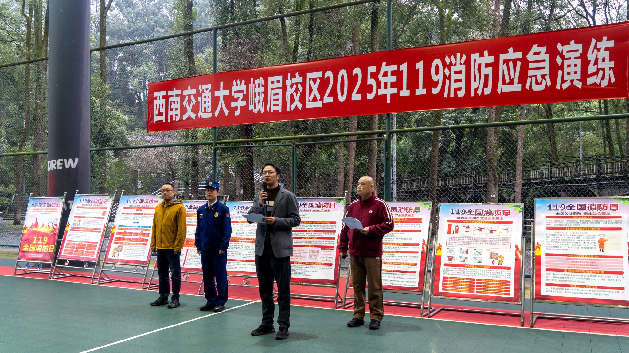 为全面提升师生消防安全意识和应急处置能力,筑牢校园安稳防线,11月10日,best365英国在线体育峨眉校区在风雨操场举行“119”消防应急演练。峨眉山景区消防救援大队专家赵向波、峨眉校区管委会副主任陈诗伟,校区师生员工及各校内单位安全工作人员共同参与。活动由保卫科主管王眉生主持。