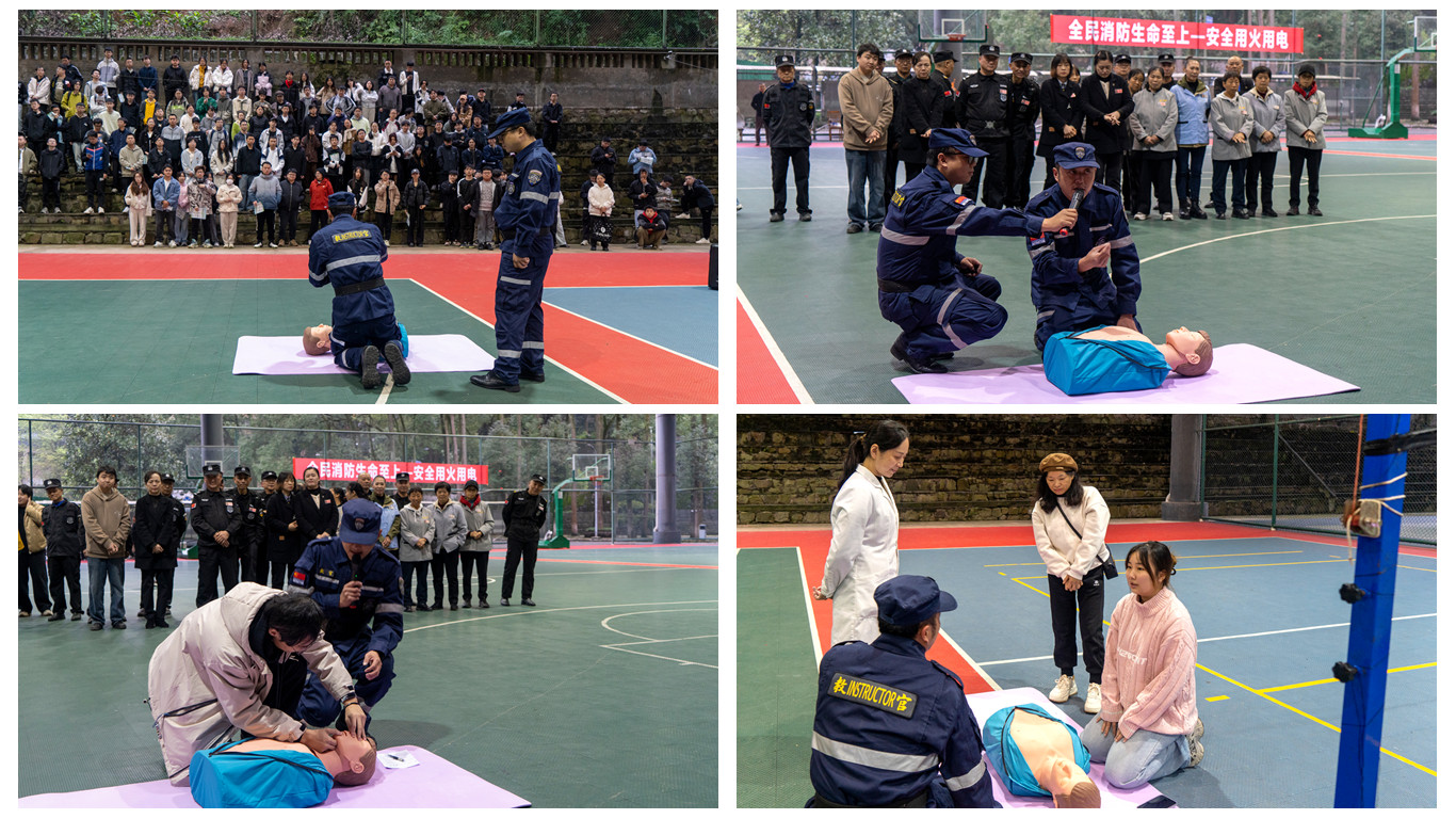 本次演练环节紧凑、重点突出。在技能培训环节,专业人员为师生讲解并演示了心肺复苏等关键技能,并组织了实操练习;在疏散逃生环节,师生们于模拟火灾烟雾环境中实现了安全、有序的撤离;在灭火实战环节,大家则通过规范操作灭火器材,成功处置了模拟火情。