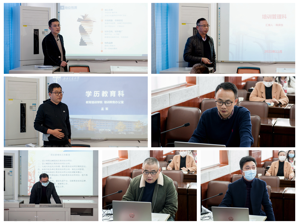 培训教务办公室副主任兼培训管理科科长陈庚生汇报了培训管理科的工作职责、工作特点、工作思路和努力方向。他介绍,培训管理科事务琐碎,需要多方协调,且临时情况多,服务要求高,科室人员要秉着“重安稳、强落实、抓细节、优服务”的工作思路,共同发力,努力把科室工作做好。