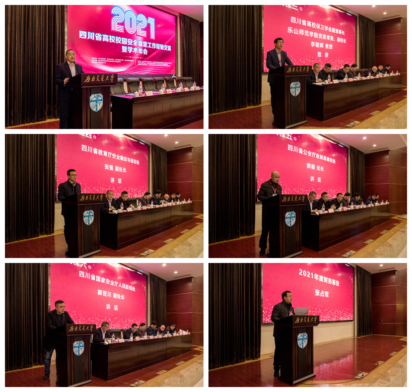 四川省教育厅、公安厅、国安厅相关负责同志也在会上作了交流发言;四川省高校保卫学会秘书长、电子科技大学党委保卫部部长余魅代表学会作学会年度总结报告及2022年工作规划;常务理事单位best365英国在线体育党委保卫部部长张占军代表学会作2021年度学会财务报告。