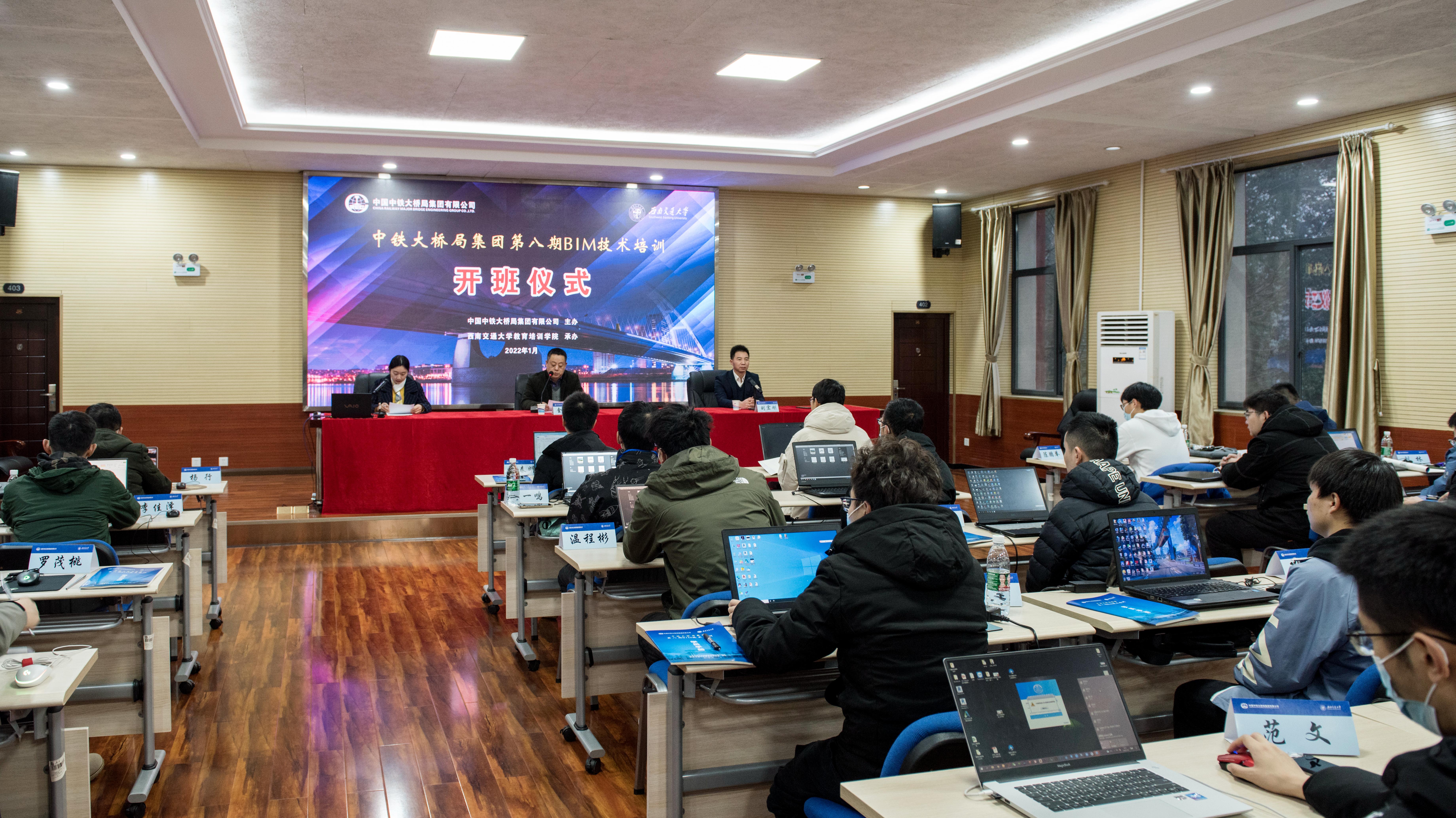 2022年1月8日上午,中铁大桥局第八期BIM技术培训班开班仪式在best365英国在线体育峨眉校区举行。中铁大桥局集团科技与信息化部副总工程师刘宏刚、best365英国在线体育英国上市公司官网365学院副院长金刚毅、英国上市公司官网365学院培训教务办公室副主任兼培训管理科科长陈庚生、以及全体学员参加了开班仪式,best365英国在线体育英国上市公司官网365学院培训管理科副科长杨雪莲主持开班仪式。