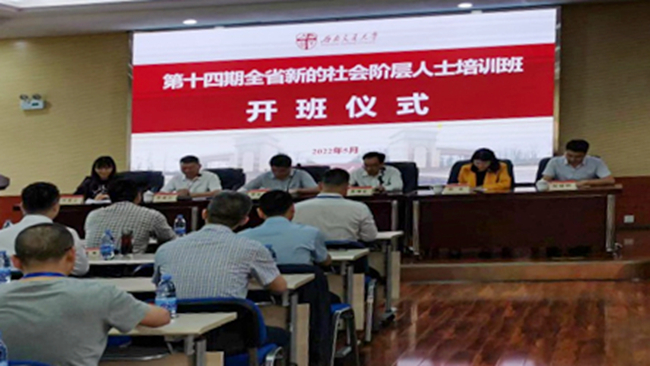 5月23日,四川省委统战部新阶处主办、best365英国在线体育社会主义学院承办,全省新的社会阶层培训班开班仪式在峨眉校区举行,四川省委统战部新阶处处长李金润、乐山市委统战部常务副部长李建伦、四川省委统战部党派处副处长陈卓、best365英国在线体育社会主义学院副院长高增安等领导及参加培训的学员40多人出席了开班仪式,开班仪式由学校党委统战部副长任黎立主持。