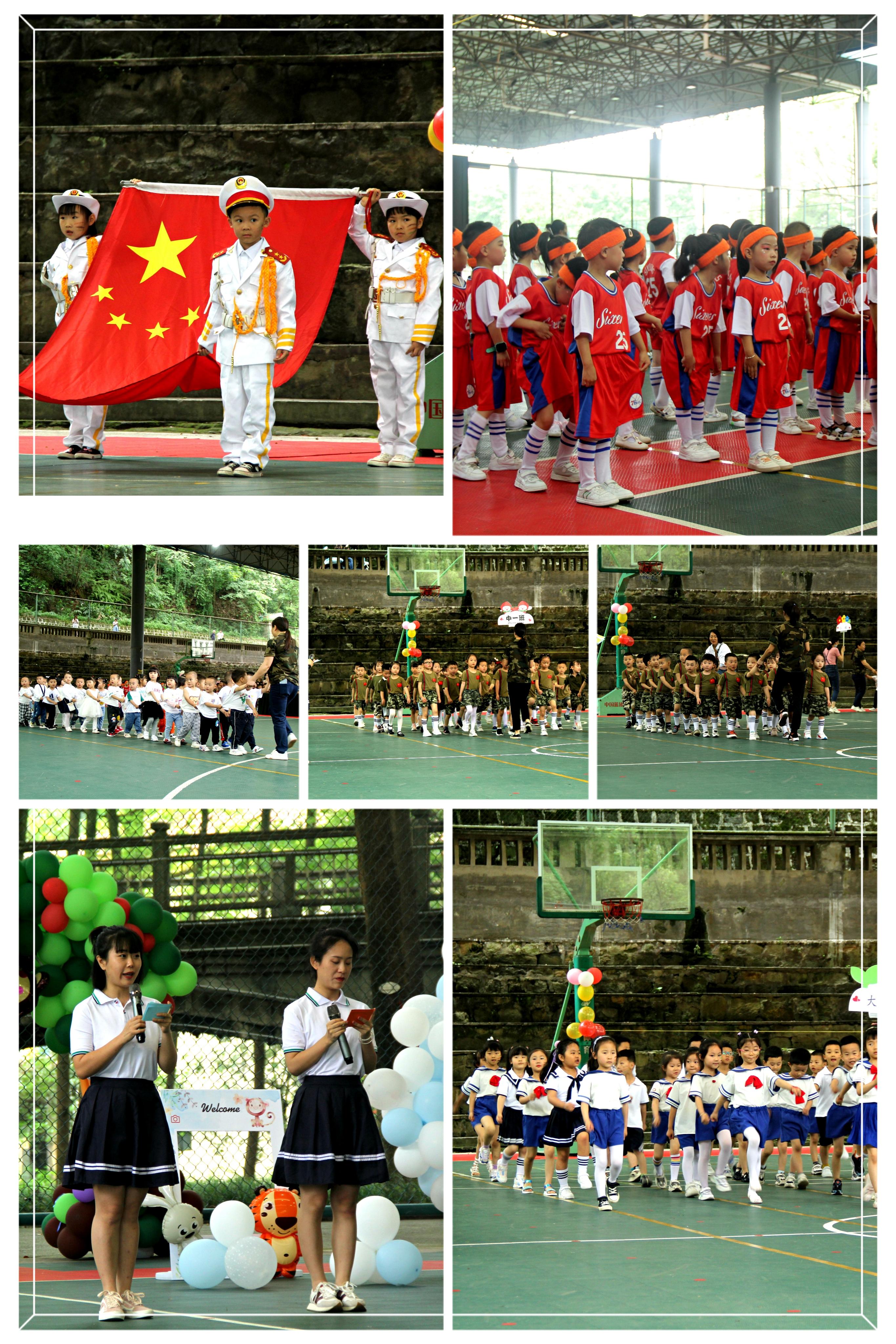 上午10:00,伴随着激扬的运动员进行曲,小小运动员们喊着各自的口号、迈着坚定而有力的步伐出场了。