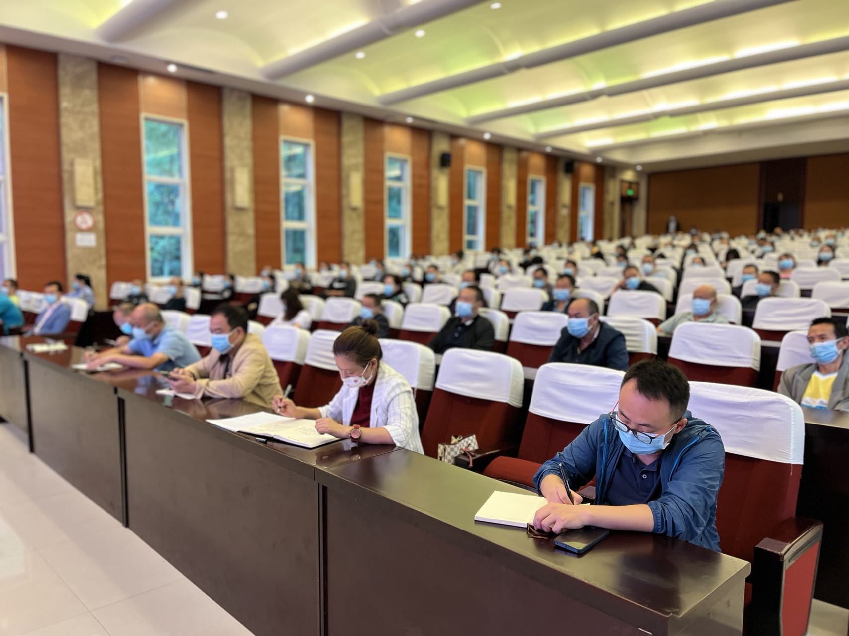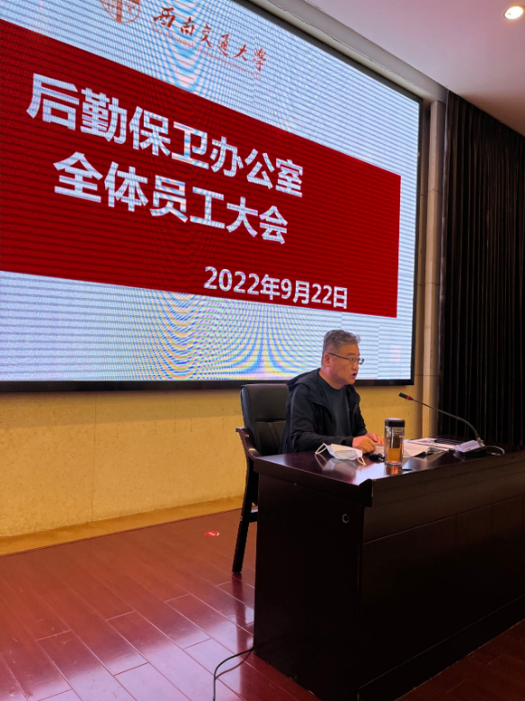 2022年9月22日上午9点,后勤保卫办公室在扬华讲堂召开全体职工大会,宣传学习贯彻学校第十五党代会精神,总结后保办上半年工作、部署下半年任务。会议由峨眉校区党工委委员、管委会副主任兼后勤保卫办公室李琦主持。