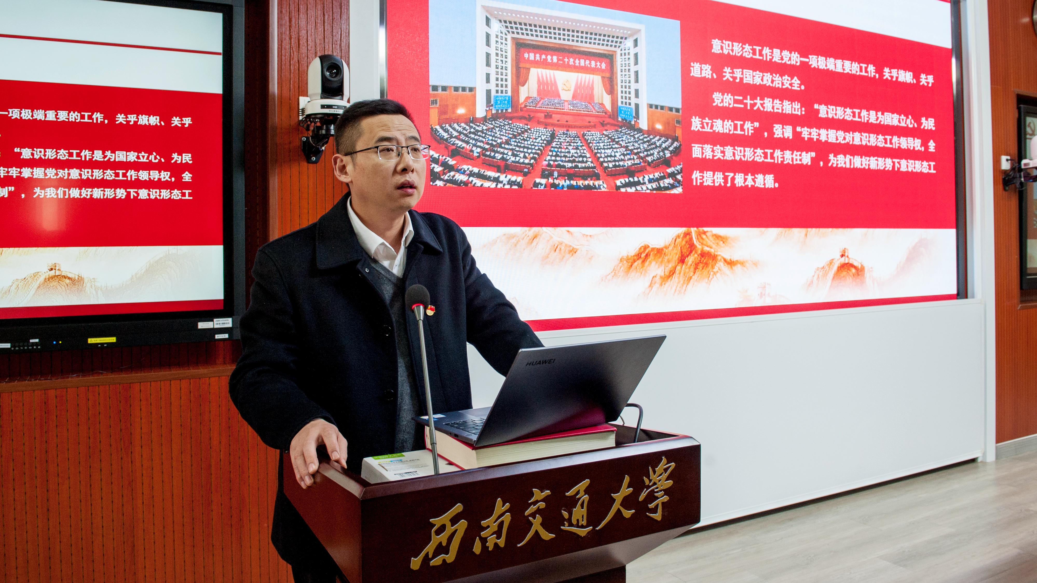 宋刚同志以“深入学习宣传贯彻党的二十大精神,重视和加强意识形态工作”为题,全面介绍了意识形态工作的地位作用,意识形态领域面临的情况和意识形态工作的基本要求。他指出,意识形态工作是党的一项极端重要的工作,关乎党的前途命运,关乎国家长治久安,关乎民族凝聚力和向心力。峨眉校区党工委和英国上市公司官网365学院党委要坚持和加强党对意识形态工作的全面领导,把握意识形态工作主导权,维护校区意识形态安全。一要做到牢牢把握意识形态工作正确方向,二要坚持不懈用习近平新时代中国特色社会主义思想武装全党,三要大力推动传播手段建设和创新,四要严格落实意识形态工作责任制,五要建设高素质意识形态人才队伍。