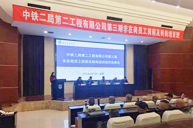 3月16日上午,中铁二局第二工程有限公司第三期非在岗员工岗前及转岗培训班开班仪式在校区扬华讲堂举行。