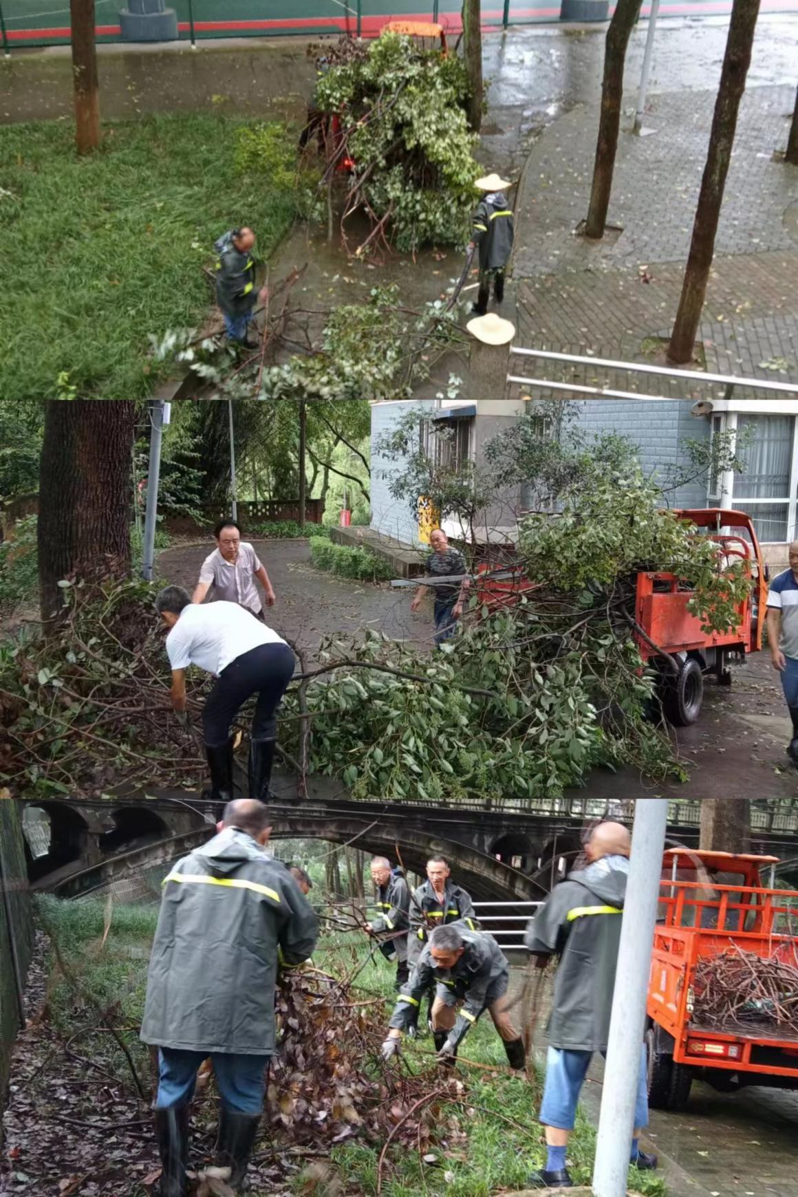 开展雨后倒伏树木清理工作。夏季是暴雨和大风频发的季节,强烈的暴雨和大风给校区树木带来严峻的考验,导致倒树和断枝的情况时有发生,面对此情况,园林工作人员迅速行动,及时清理倒树及断枝,确保公共安全和校园美观。
