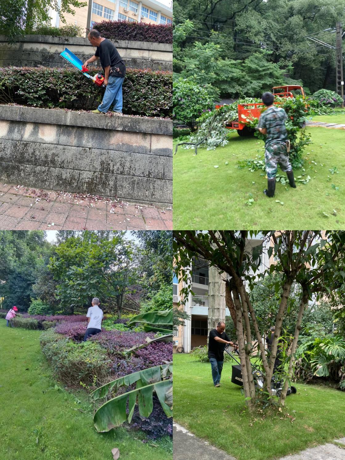做好绿植修剪整形工作。受高温、降雨的影响,校区绿植开始茂盛生长。对此,园林工作人员结合植物生长季节特点,对校区内花灌木、绿篱、草坪进行全面精细化修剪、整形,及时去除枯死枝、折断枝、病虫枝,确保绿化苗木健康生长。