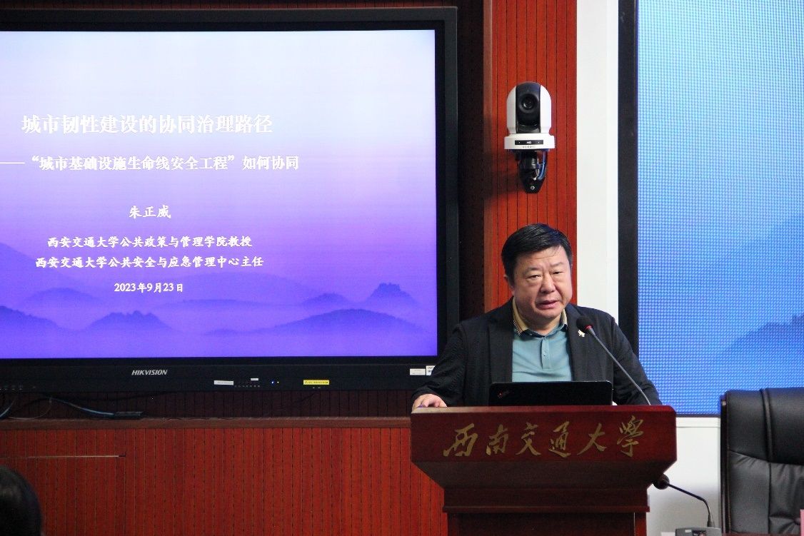 西安交通大学公共政策与管理学院朱正威教授作了题为《城市韧性建设的协同治理路径—“城市基础设施生命线工程”如何协同》的主旨发言。