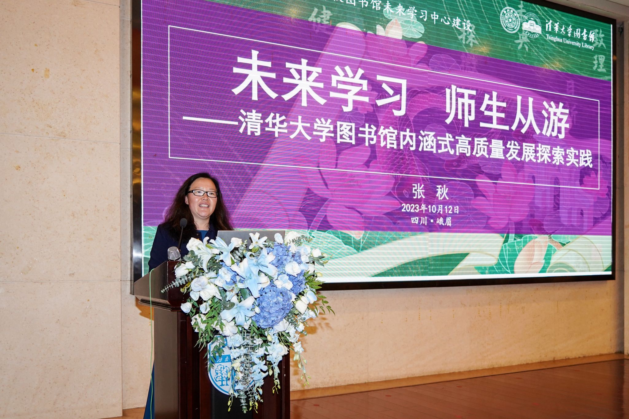 清华大学图书馆副馆长张秋在题为“未来学习 师生从游——清华大学图书馆高质量发展探索实践”的报告中 重点介绍了清华大学图书馆师生从游空间的建设实践,在“以学生为中心” 的理念对图书馆的空间改造中,将先进的网络信息技术与教育教学相结合,硬件与软件并重,实现教学、管理和服务“智能化”,营造师生互动、生生互动,有温度的精神空间。