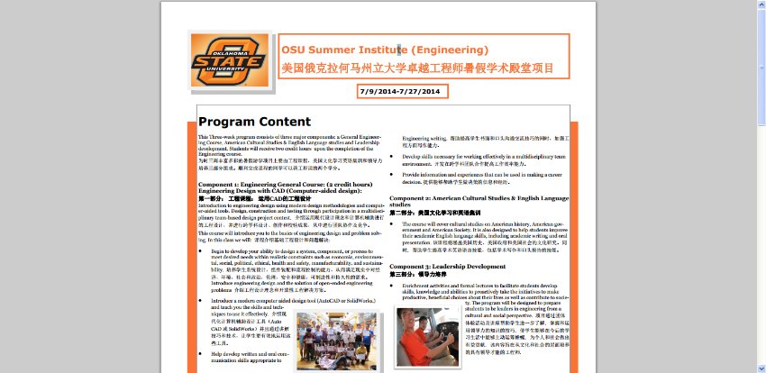 为配合我校卓越工程师计划,培养国际化高层次人才,我校国际处、教务处、和美国俄克拉荷马州立大学(Oklahoma State University,简称OSU)联合推出暑期国际游学项目,现将2014年赴美游学项目相关事宜通知如下。