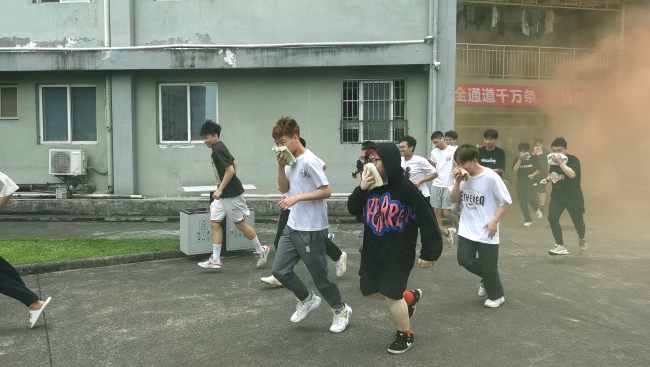 下午14点30分,防灾减灾应急疏散演练正式开始。演练模拟校区发生地震引发火灾,学生宿舍楼被浓烟包裹,楼道内被困同学受有毒浓烟侵害。随着疏散警报响起,同学们按照应急预案和演习规划线路,在工作人员的指引下,快速有序的朝着疏散集合点撤离,到达集合点后,按班级列队集合清点人数。