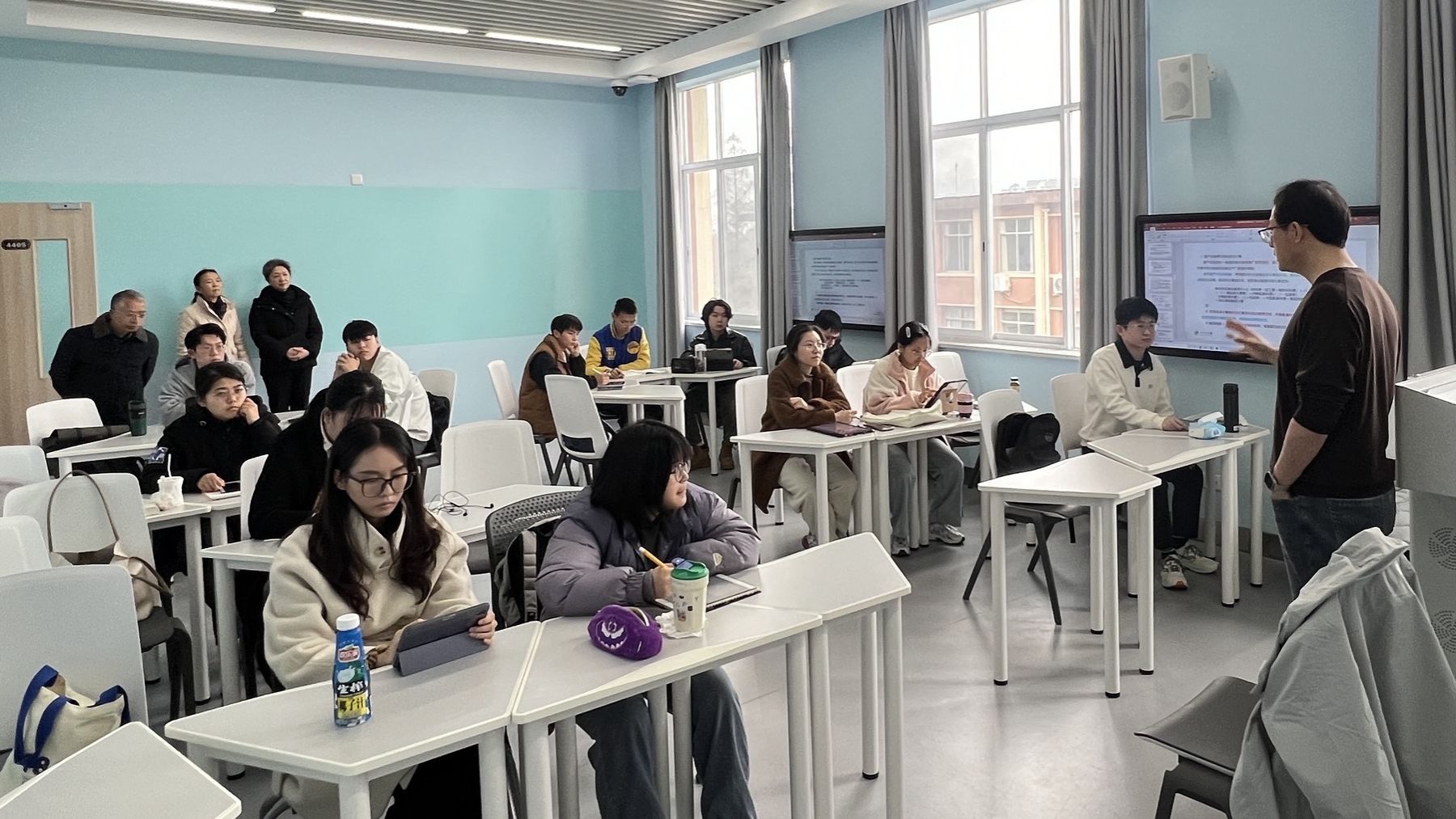会后,富海鹰一行前往四号教学楼智慧教室实地考察第二学士学位教学情况。