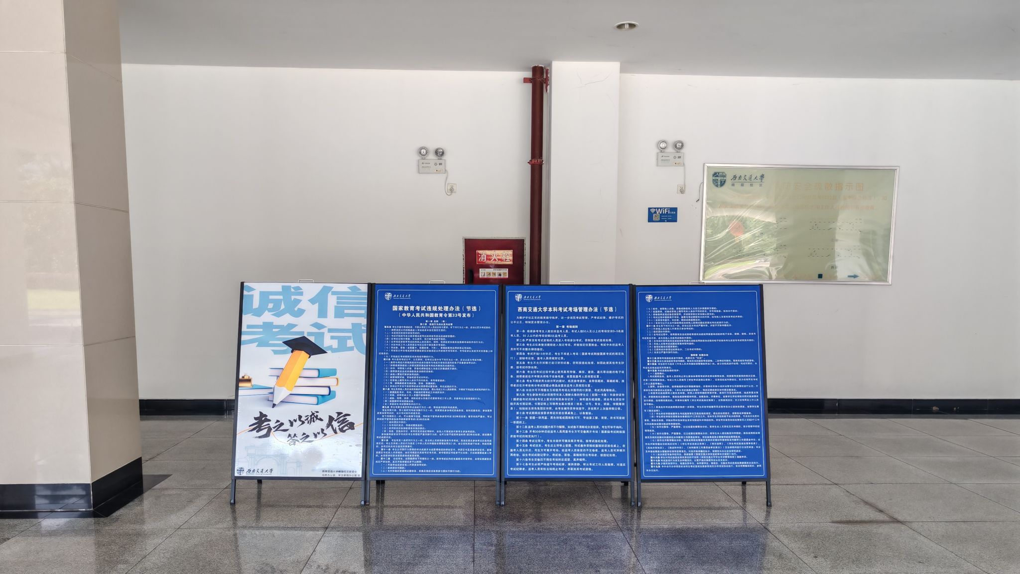 培养办公室在教学楼以及学生宿舍生活区域等重要场所设置主题宣传展板,展示考试纪律要求和警示信息,积极营造诚信考试氛围。