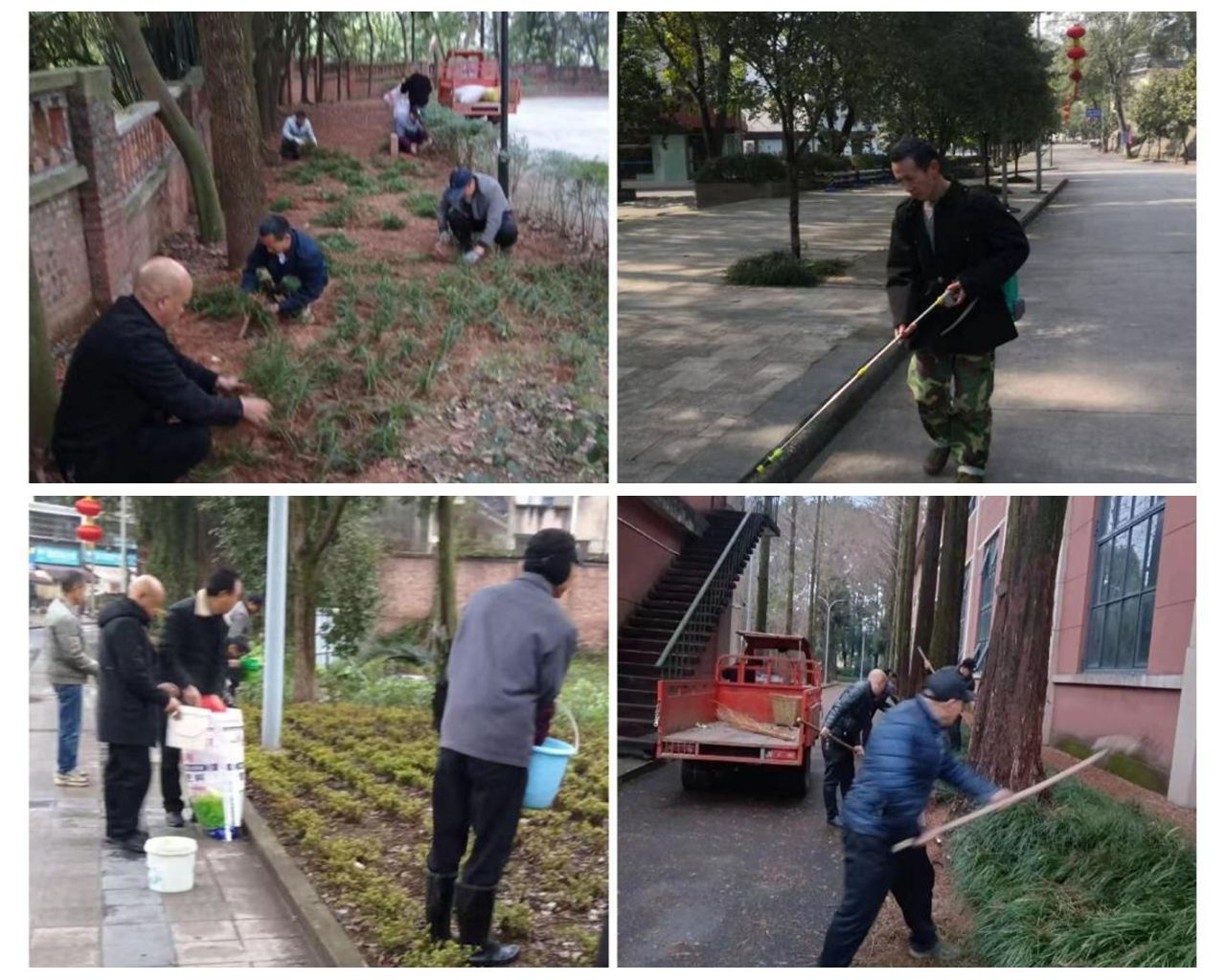 为了在新学期为师生营造一个更加整洁、优美的校园环境,物业与水电园林工作人员利用寒假时间,开展一系列绿化养护工作,草坪维护、花卉种植,主干道除草等。