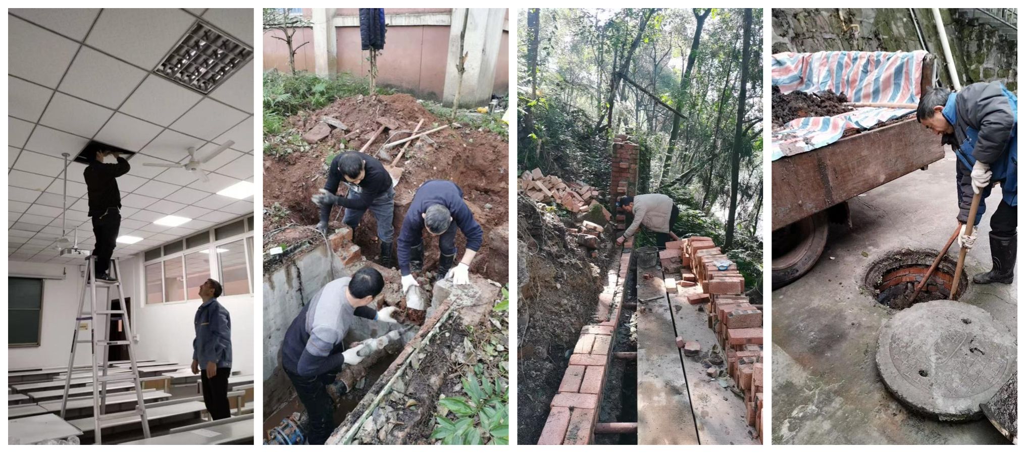 水管爆裂、电路故障、围墙破损……每当突发问题出现,维修工人总能第一时间赶赴现场。他们身背工具包,攀爬高梯检修灯具,匍匐在地抢修管道,甚至钻入闷热的设备间抢修线路。 他们定期巡检设备,小到一颗螺丝的松动、大到配电系统的隐患,均能精准排除,确保校园基础设施安全稳定运行,这些“隐形守护者”用专业与担当诠释了“服务无小事”的信念,他们的工具箱里装着扳手与螺丝刀,更装着对校园的责任与热爱。