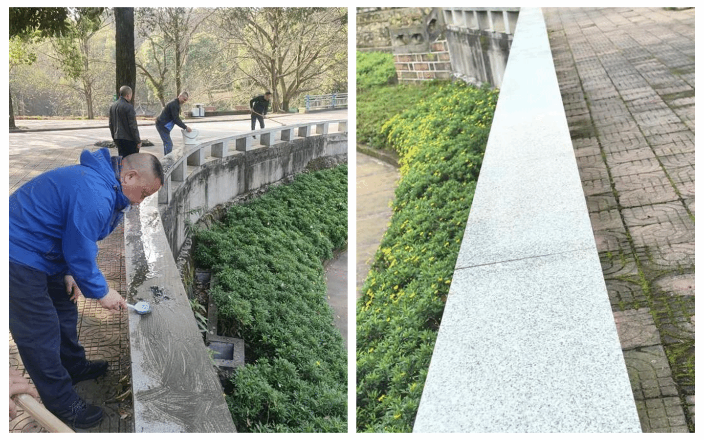 四号桥石凳护栏随着时间推移,风雨的侵蚀,渐渐失去了往日的光彩,为提升校园环境品质,环卫工人对石凳护栏进行了清洗、冲刷,使其恢复原有色泽,让这座承载师生无数休憩记忆的桥梁焕发新生。