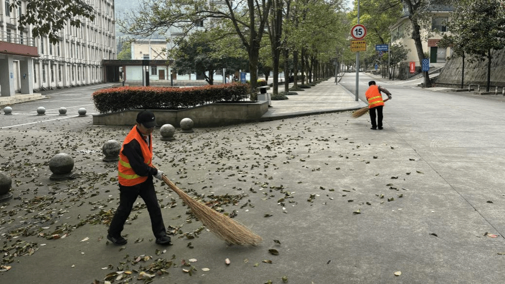 清晨六点的校园,路灯尚未熄灭,环卫工人的扫帚声已划破寂静。他们用粗糙的双手清扫落叶、擦拭栏杆、清运垃圾,将污渍与尘埃阻挡在师生的视野之外,春季的落叶又增大了他们的工作量,校园的每一处干净,都是他们弯腰千次的馈赠。