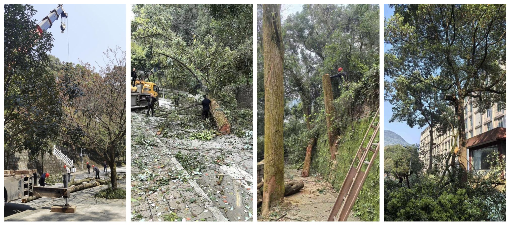 为消除校区枯枝危树隐患,园林工人对校区主干道、西山梁枯枝危树进行了全面清理,有效保障了师生通行安全。