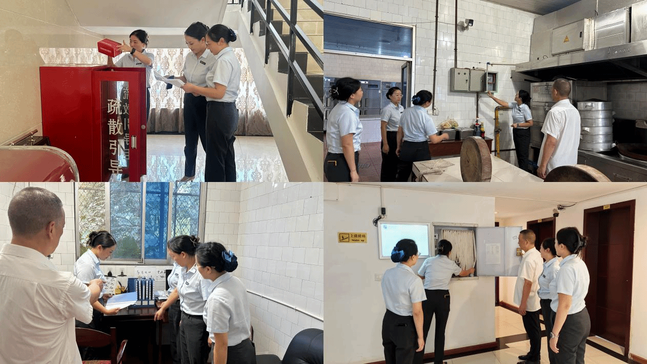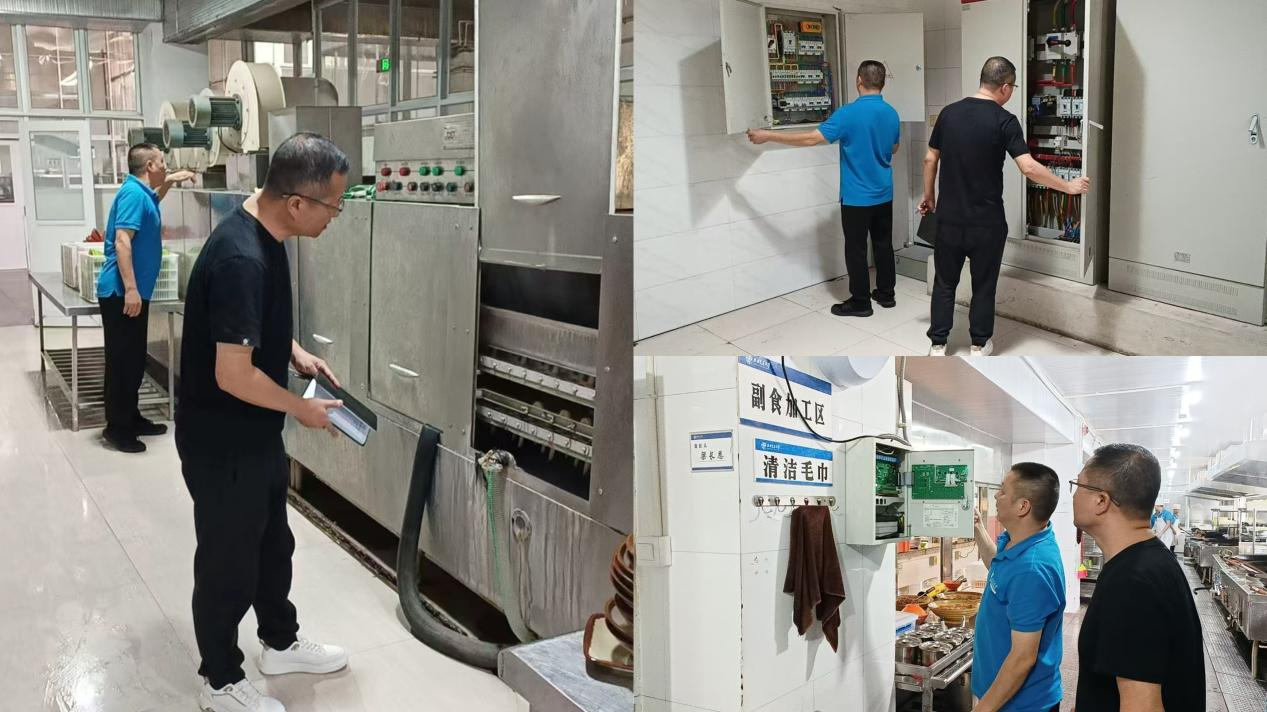 此次检查聚焦师生高频活动区域与安全关键环节,各部门分工协作、联动配合,确保排查无死角、整改无遗漏。科技交流部坚持“全覆盖、无盲区”原则,重点对科技交流中心餐厅及住宿片区开展深入检查。在餐厅区域,检查人员逐一核查电路铺设规范性、灶具运行安全性,细致排查燃气管道与电器设备等潜在风险,杜绝因线路老化或设备故障引发的安全问题。在住宿区域,涵盖科技交流中心、路南及西山梁住宿片区,检查内容包括电路运行状况、消防器材有效期与规范摆放,以及房间门窗密封性、防毒用品有效期等细节,同时对电梯维护记录逐项核验,确保特种设备安全运行。