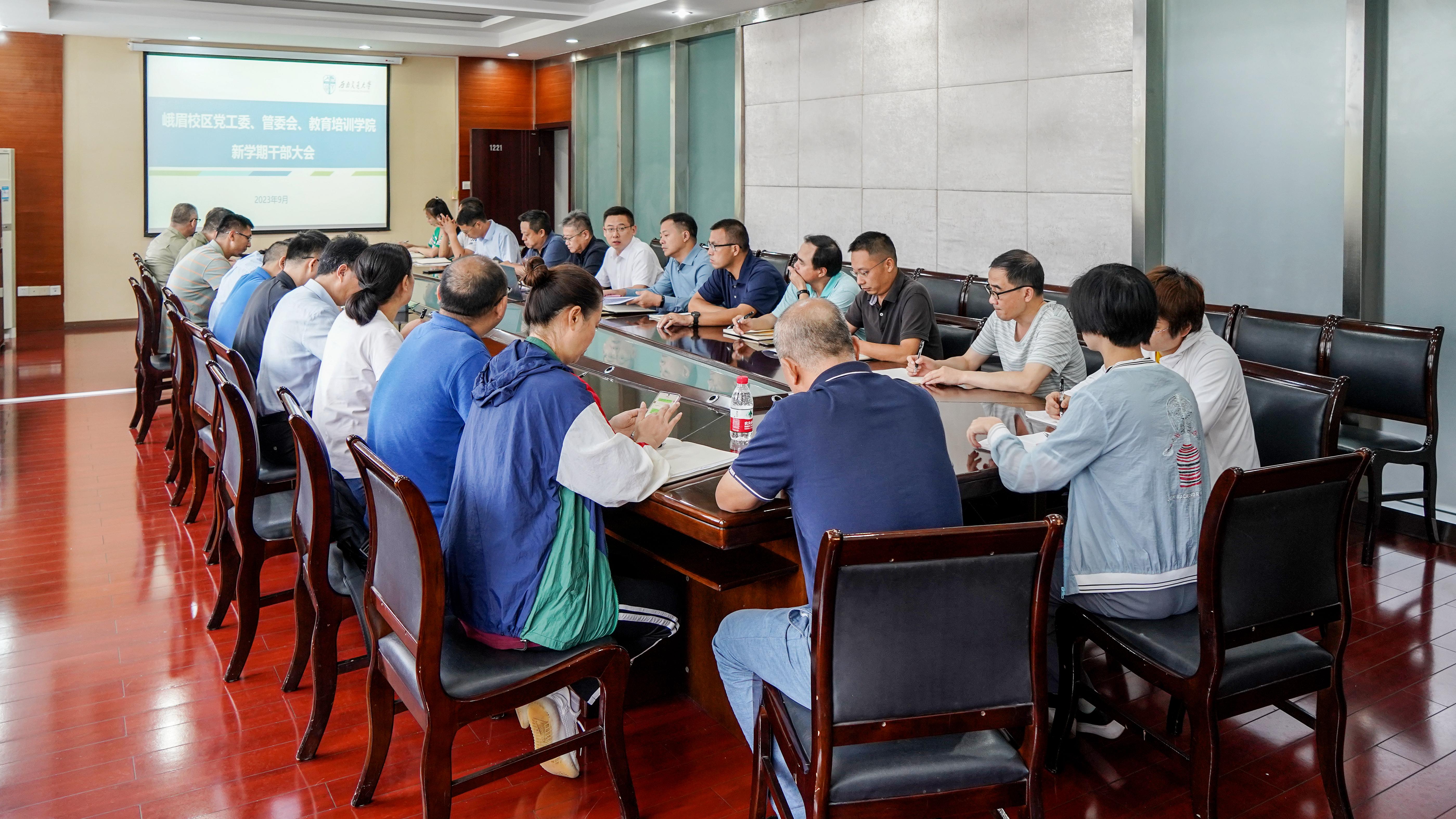 2023年9月12日,峨眉校区党工委、管委会、英国上市公司官网365学院召开新学期干部大会,通报假期和开学初工作情况,部署校区近期主要工作,贯彻落实学校有关要求。全体领导班子成员出席会议,全体科职及以上领导干部参加会议,会议由校区党工委常务副书记、英国上市公司官网365学院党委常务副书记宋刚主持。会上,综合管理办公室陈诗伟、后勤保卫办公室刘科利、培训教务办公室孟军、培训发展办公室许炜强分别汇报了各办公室假期及开学初开展的主要工作...